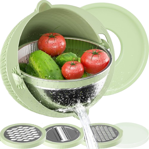 4-1 Colander with Mixing Bowl Set - Strainers for Kitchen, Food Strainers and Colanders, Pasta Strainer, Rice Strainer, Fruit Cleaner, Veggie Wash, Salad Spinner, Apartment & Home Essentials - Green