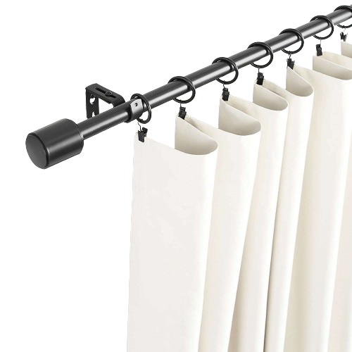 Curtain Rod, Includes 2 Matching Finials, Brackets & Hardware, 66 to 120-Inches, Black