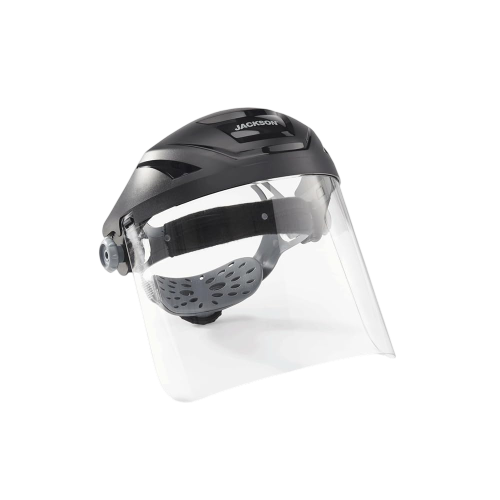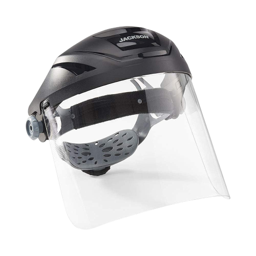 The Jackson Safety F4XP Crown Face Shield offers superior protection with its clear anti-fog polycarbonate window for grinding. Paired with the ratcheting safety headgear and universal pin pattern, this shield ensures a secure and comfortable fit for all-day wear. Trust in its professional-grade construction for ultimate safety on the job.