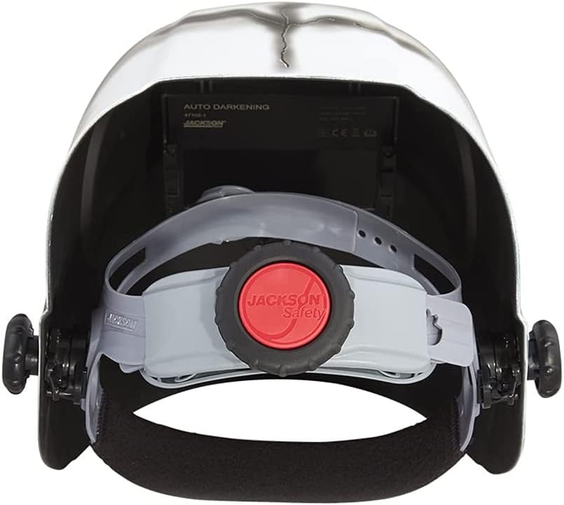 The Jackson Safety welding helmet offers a 3/10 shade range and 1/1/1/1 optical clarity for superior protection. With a quick 1/30,000 sec. response time and 370 speed dial headgear, it's perfect for professional welders. The sleek black/grey/white design with gray matter graphics adds a touch of style to your safety gear.
