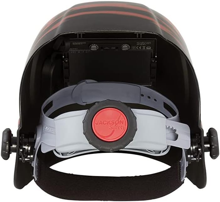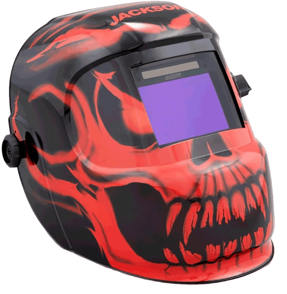 The Jackson Safety Premium Auto Darkening Welding Helmet boasts an impressive 4/9-13 shade range, 1/1/1/2 optical clarity, and 1/25,000 sec. response time. With its 370 speed dial headgear and stylish Bead Demon graphics in red and black, this helmet guarantees top-notch performance and protection for all your welding needs.