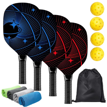 Pickleball Essentials Set - 4 Balls, 4 Cooling Towels, Carry Bag, and Rackets with Ergonomic Cushion Grip