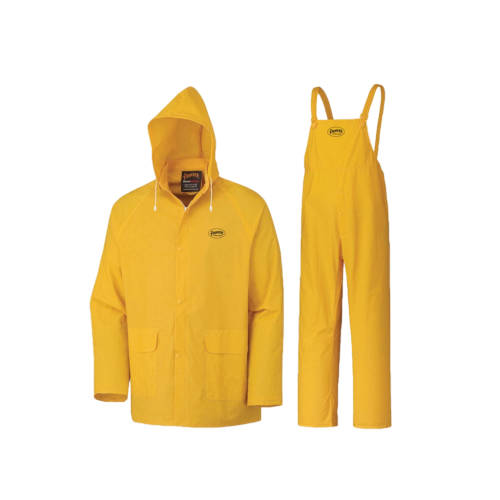 Pioneer Waterproof PVC Work Suit for Men – Repel Rain Gear Yellow Safety Jacket and Bib Pants - 3 PC Set With Detectable Hood
