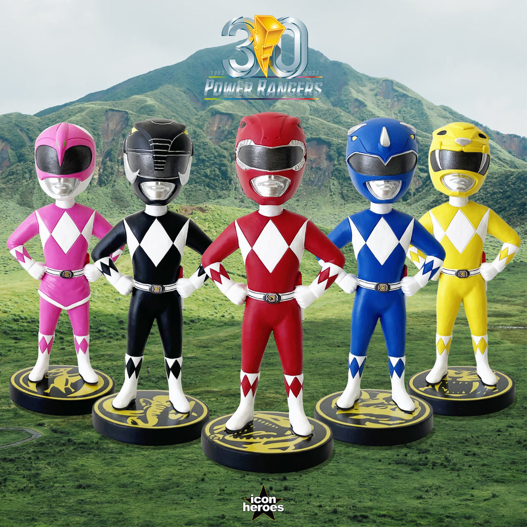 Get ready to morph into nostalgia with this incredible Power Rangers Bobbleheads Set from Icon Heroes. This limited edition boxed set features five iconic Power Rangers: the Red Ranger, Black Ranger, Blue Ranger, Pink Ranger, and Yellow Ranger. Standing tall at approximately 8 inches, each bobblehead is meticulously crafted from high-quality polystone and hand-painted to perfection.