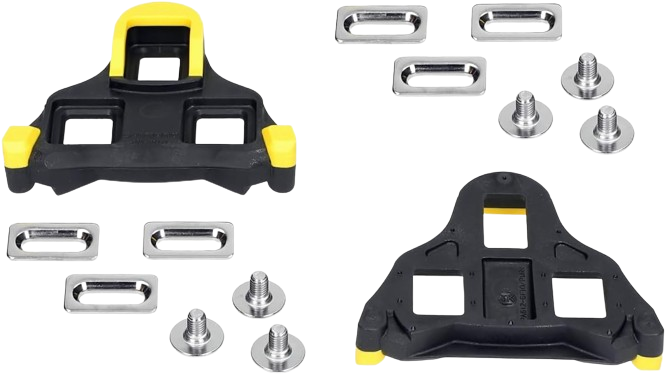 Genuine SHIMANO SPD-SL cleats compatible with road cycling shoes.