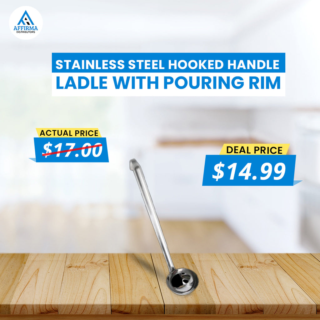 Stainless Steel Hooked Handle Ladle with Pouring Rim