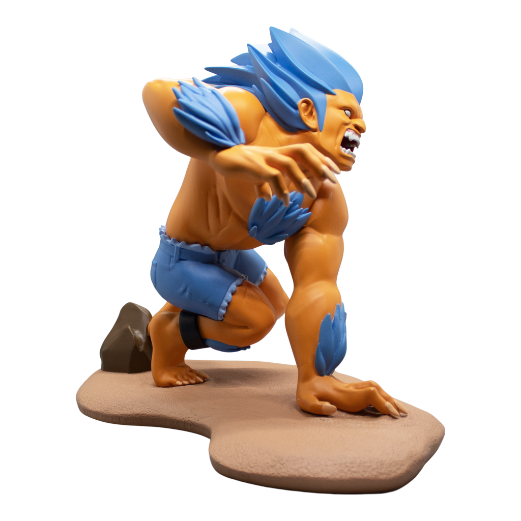 Icon Heroes presents the Street Fighter Blanka Hyper Fighting Polystone Statue, debuting at San Diego Comic Con! Designed by Joe DellaGatta, Blanka stands over 9 inches tall atop a massive beach themed base measuring over 11 inches long! Each limited edition Blanka Polystone Statue is individually numbered and includes a Certificate of Authenticity.