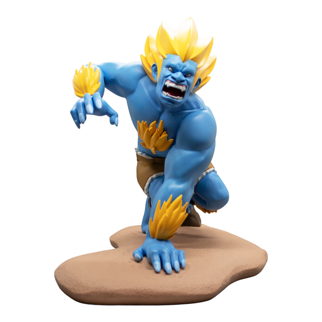 Icon Heroes presents the Street Fighter Blanka Player 2 Polystone Statue, debuting at San Diego Comic Con! Designed by Joe DellaGatta, Blanka stands over 9 inches tall atop a massive beach themed base measuring over 11 inches long! Each limited edition Blanka Polystone Statue is individually numbered and includes a Certificate of Authenticity.