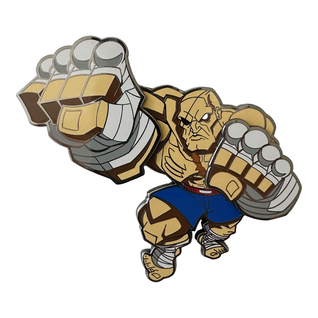 Icon Heroes presents the Street Fighter Sagat Action Pin, featuring movable fists!