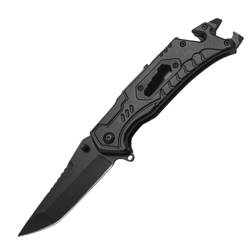 Tactical Folding Knife,Emergency Pocket Knife, Wire Stripper and Line Cutter Blades-Black