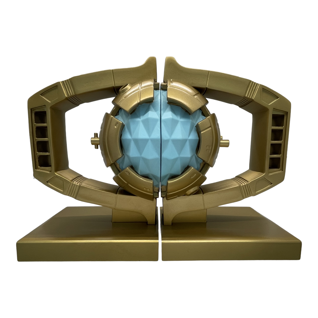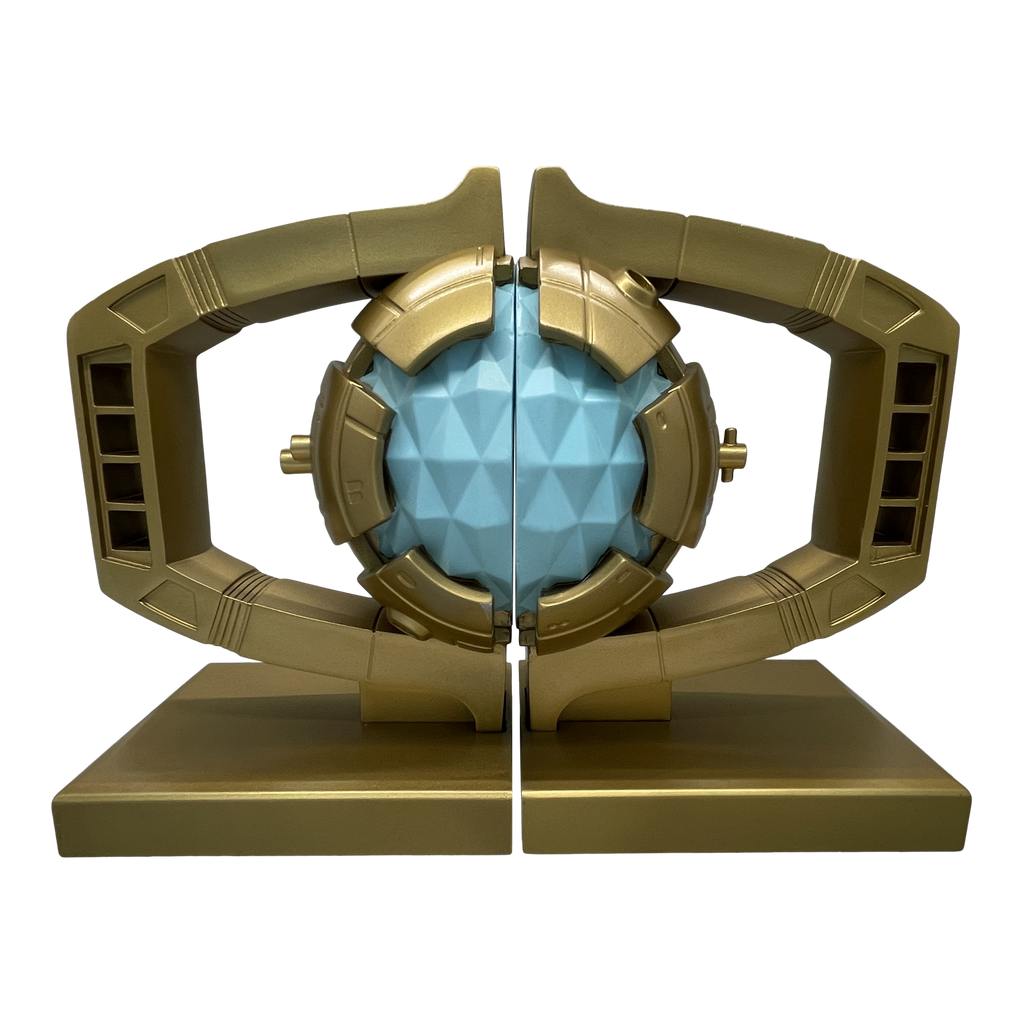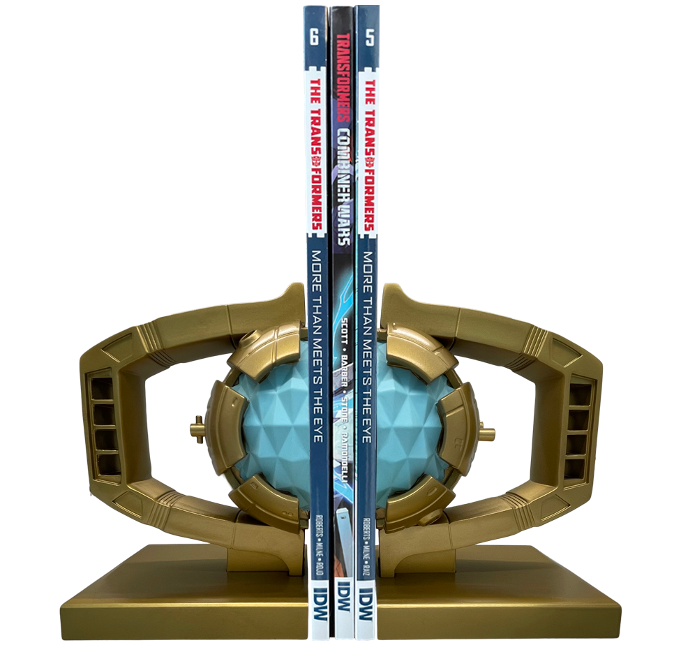 Icon Heroes presents the Transformers Matrix of Leadership Bookend, Golden Lagoon exclusive edition! Inspired by the Transformers episode The Golden Lagoon where Autobots and Decepticons are protected in electrum coating after dipping into a golden lagoon, the Matrix of Leadership Bookend measures approximately 6.2” H x 8.4” W x 4” D. Split them apart to hold and display your books, Blu-Ray Discs, DVDs, and more! Till all are one.