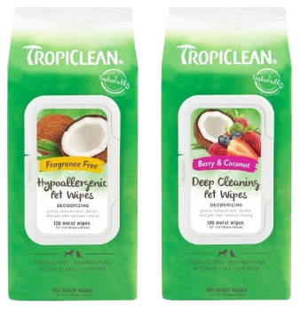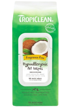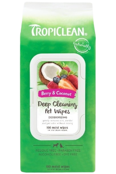 TropiClean Hypo-Allergenic Deodorizing Bath Wipes are mild enough for puppies, kittens and those with allergies. TropiClean Deep Cleaning Deodorizing Bath Wipes wash away dirt, dander and pet odor, for a simple and quick clean between baths. Our mild coconut cleanser gently lifts away dirt, drool, pollen and other potential unmentionables, leaving them fresh and ready to snuggle.